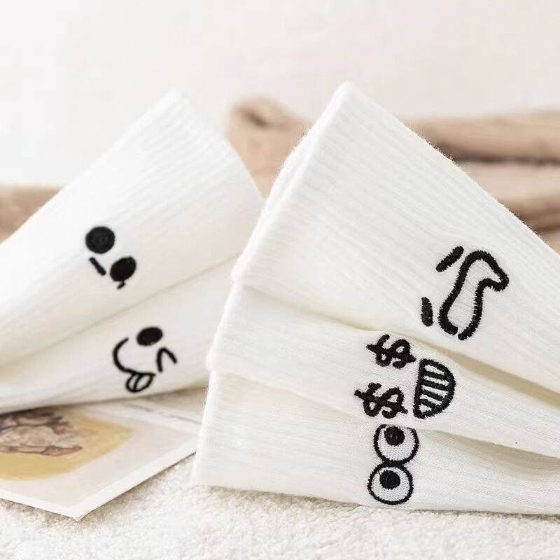Material: Polyester cotton Style: Mid-calf Features: Non-slip, sweat-absorbent, deodorizing Colors: Expression, Big C, Black R, Teddy Bear, Cloud Rabbit Set: 5 pairs